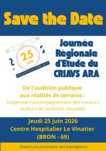 SAVE THE DATE : Journée régionale d’étude – CRIAVS ARA : De l’audition publique aux réalités de terrains : (re)penser l’accompagnement des mineurs auteurs de violences sexuelles