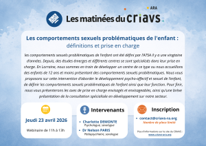 Webinaire : les matinées du CRIAVS : “Les comportements sexuels problématiques de l’enfant : définitions et prise en charge – Charlotte DEMONTE et Dr Nelson PARIS